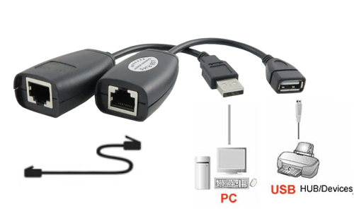 - 藉由一條Cat5e網路線延長USB1.1 周邊裝置與電腦之間的連線距離